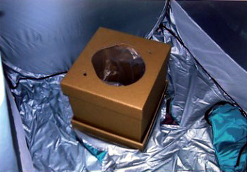 簡易トイレを屋外で使用する場合には、このようにテントに入れての使用が考えられ